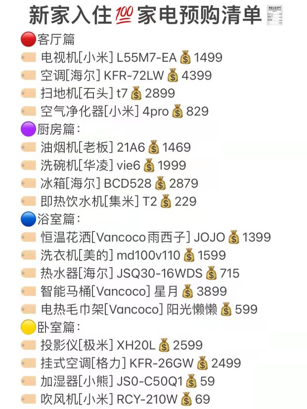 今天给,新家还在装修的姐妹们一波福利,整理出了新家入住必备清单🤤这些东西都用的到‼️大家快来记笔记📝来装饰你们的新家吧~