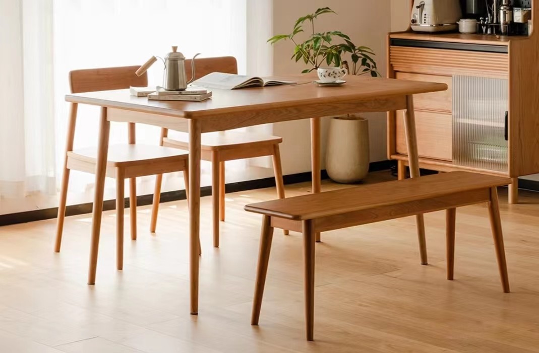 餐桌品牌:HALF HOUSE/小半餐桌型号:mdcz餐桌尺寸:180*80*75cm餐桌选用北美森林的SUP级樱桃木,真正的精选材质,木材中的优选;科学烘干、精准调控、智能控湿、提升木材硬度有效防止模板开裂;首创倒顺板拼接工艺,在板材拼接时将板材翻转,让同一块模板在使用时受到的应力呈相反反向,降低开裂风险餐桌品牌:毕斐尔餐桌型号:ZLF05餐桌尺寸:240*110*75cm柔美优雅的外表下,拥有一颗硬核的内心让你尽情惬意的享用美食;餐桌耐高温不怕烫、硬度高不惧刮磨、低吸水率易清洁;双T字型的设计无论压力推力都可以转化成向下的稳定力,稳固承重