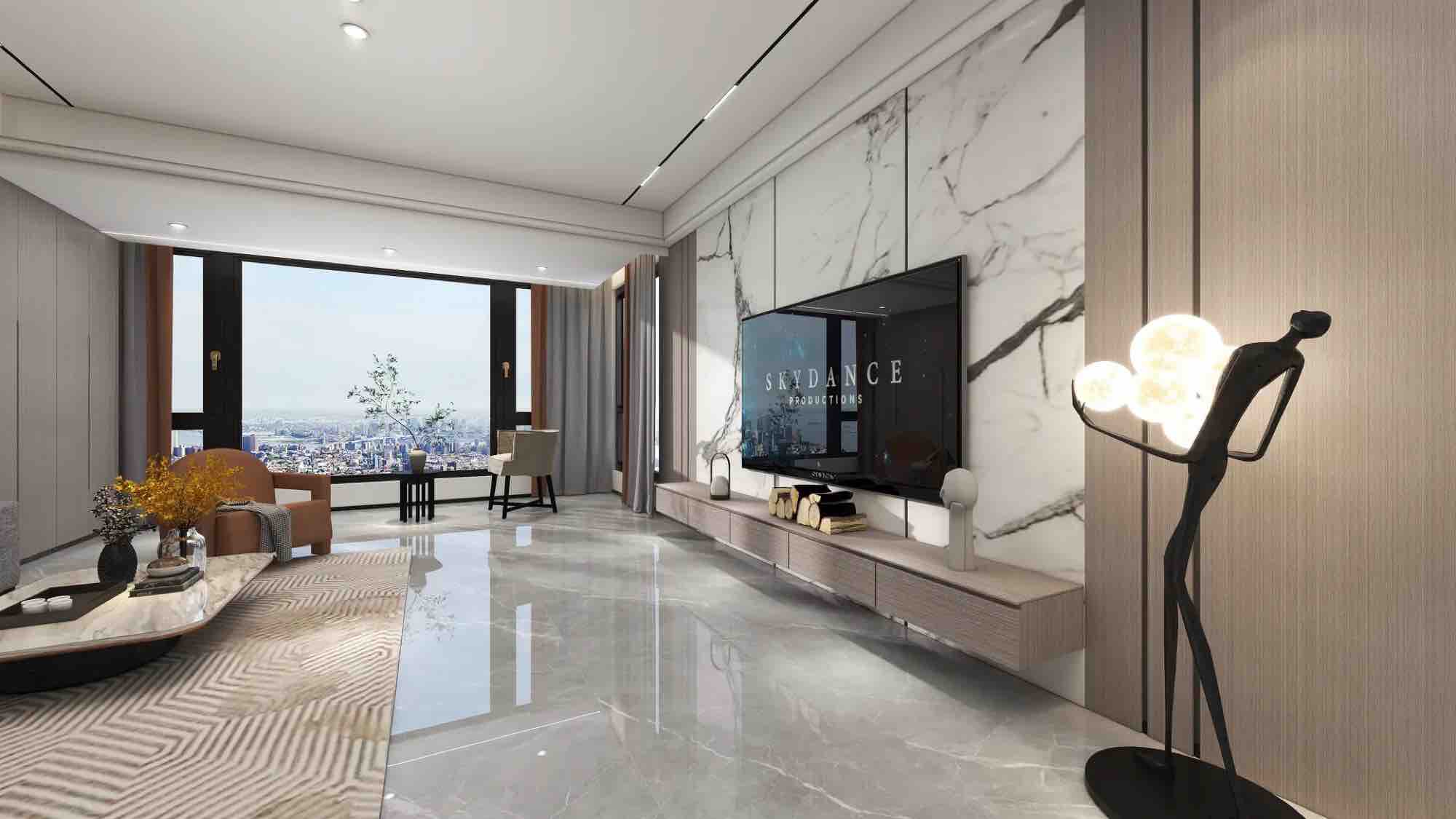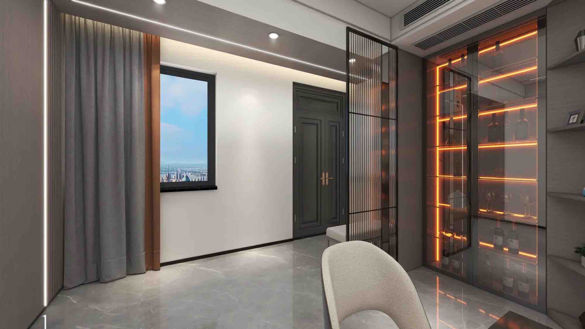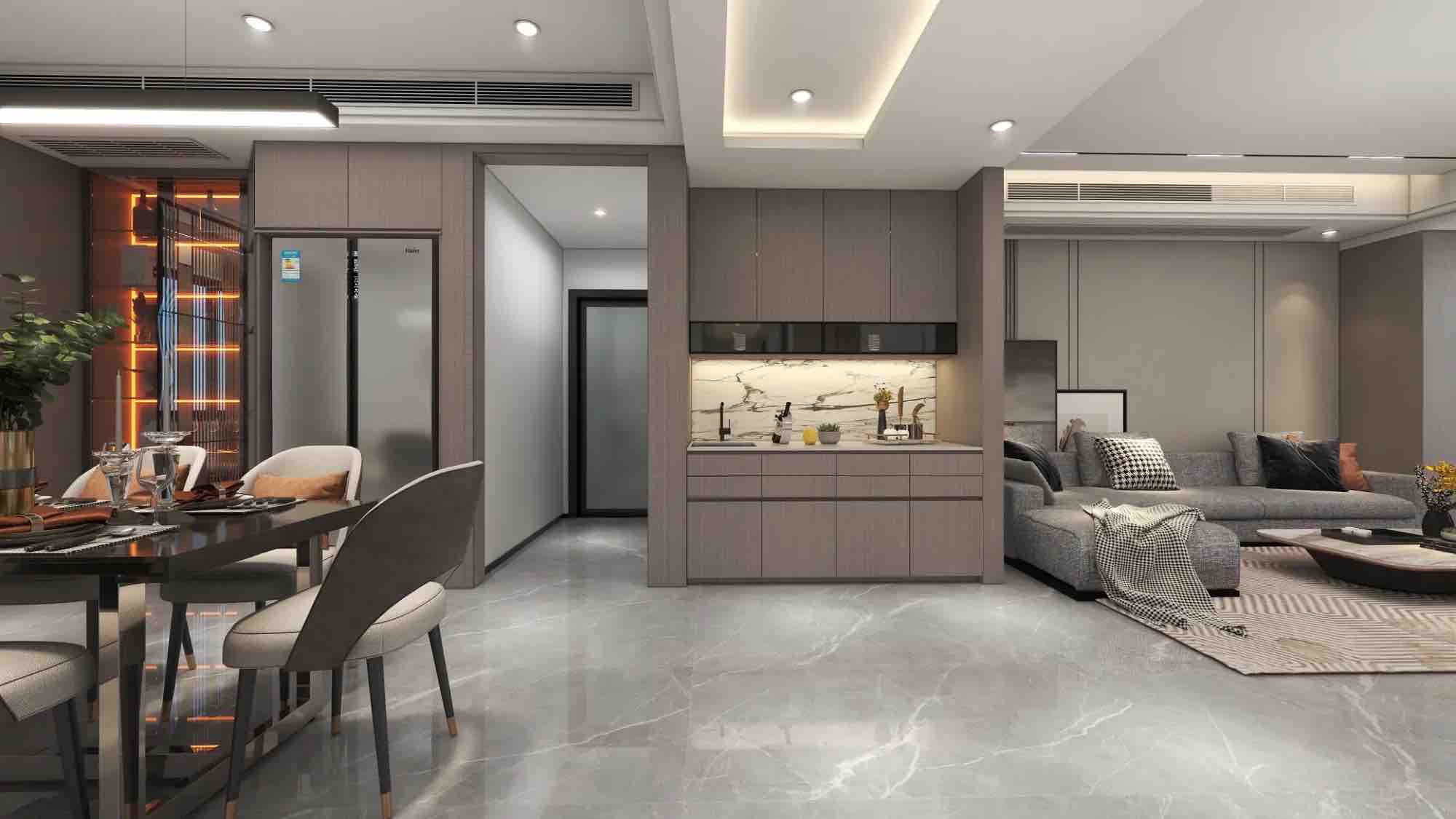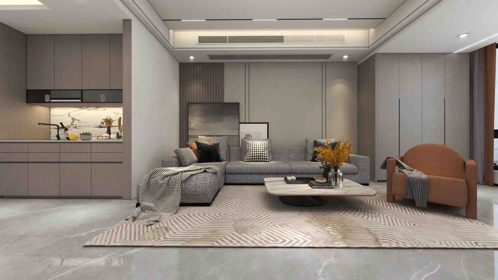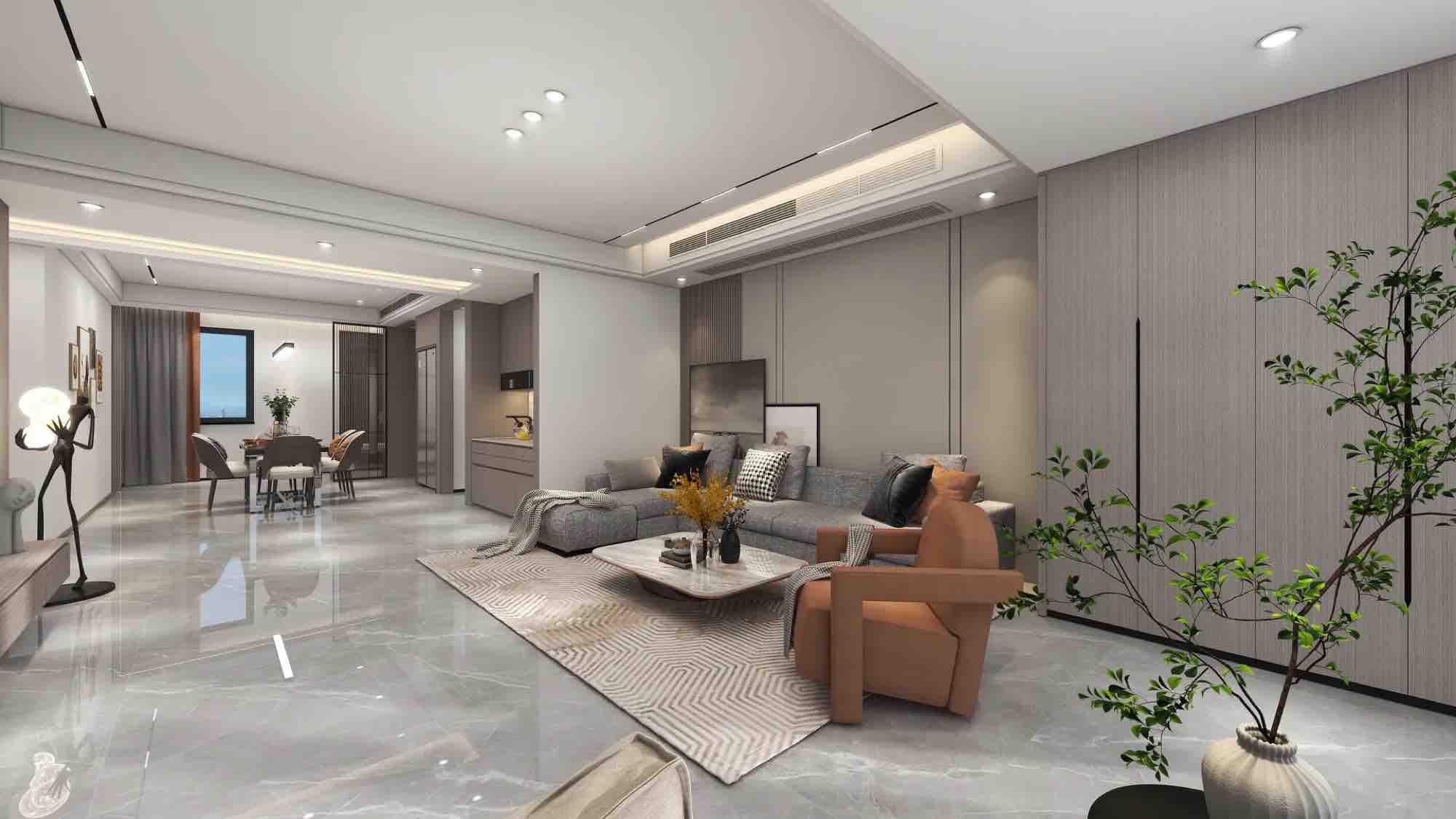 整体以灰色调为主,木色与大理石的结合让整个空间更加活泼,人造光提升氛围更佳,以橙色为点缀让整个空间更加灵活#高端全屋定制##现代简约风格##室内设计#