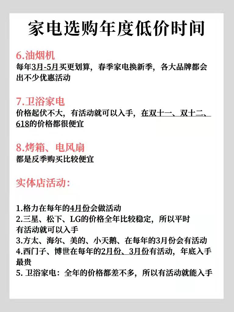 新家装修,很多朋友会选择在双11,双12买家电 但其实,有些家电并不是在这个时候最便宜‼️