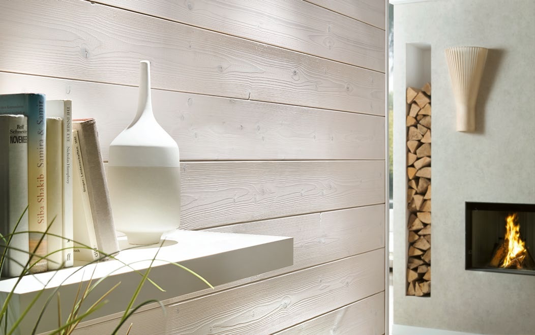 在空旷的客厅使用实木来打造一面实木隔板墙,再涂刷上好看的白色,看起来既现代又居家,木蜡油在给木材着色的同时,并没有遮盖住木材的自然纹理,整面实木隔板墙在木纹的点缀下大方又美丽。