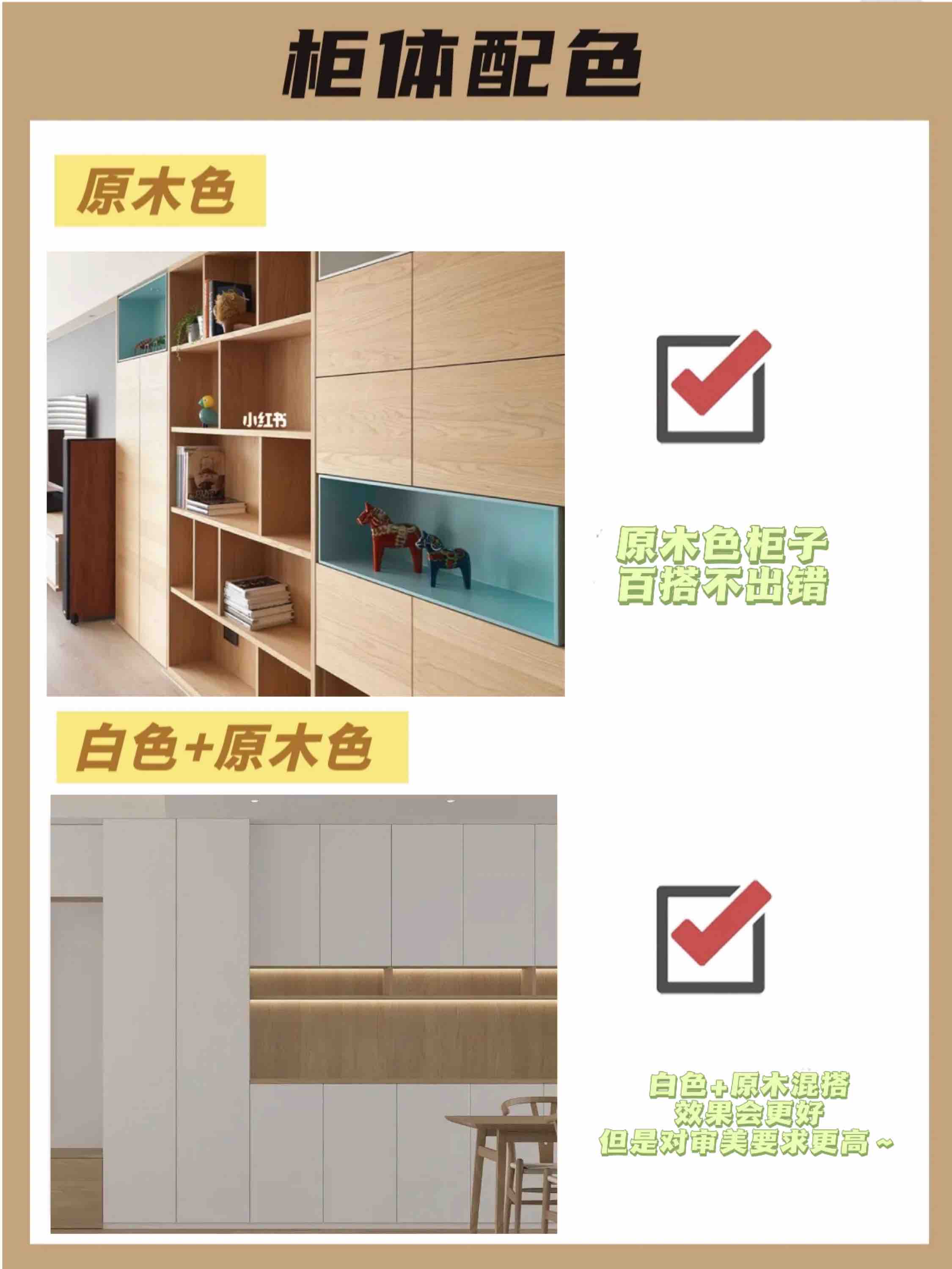 定制柜一般都是以原木色为主,可以选择原木+白混搭,
