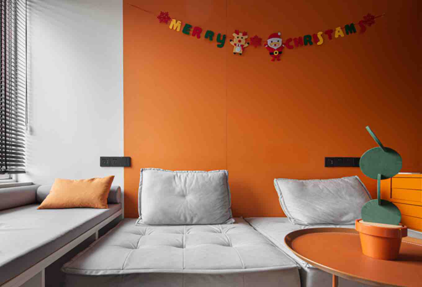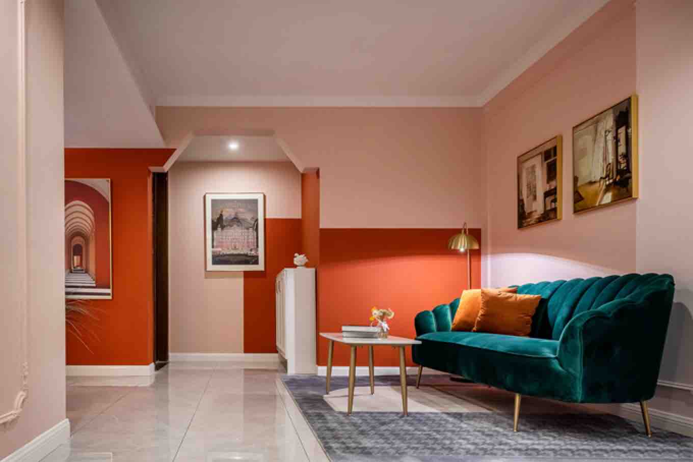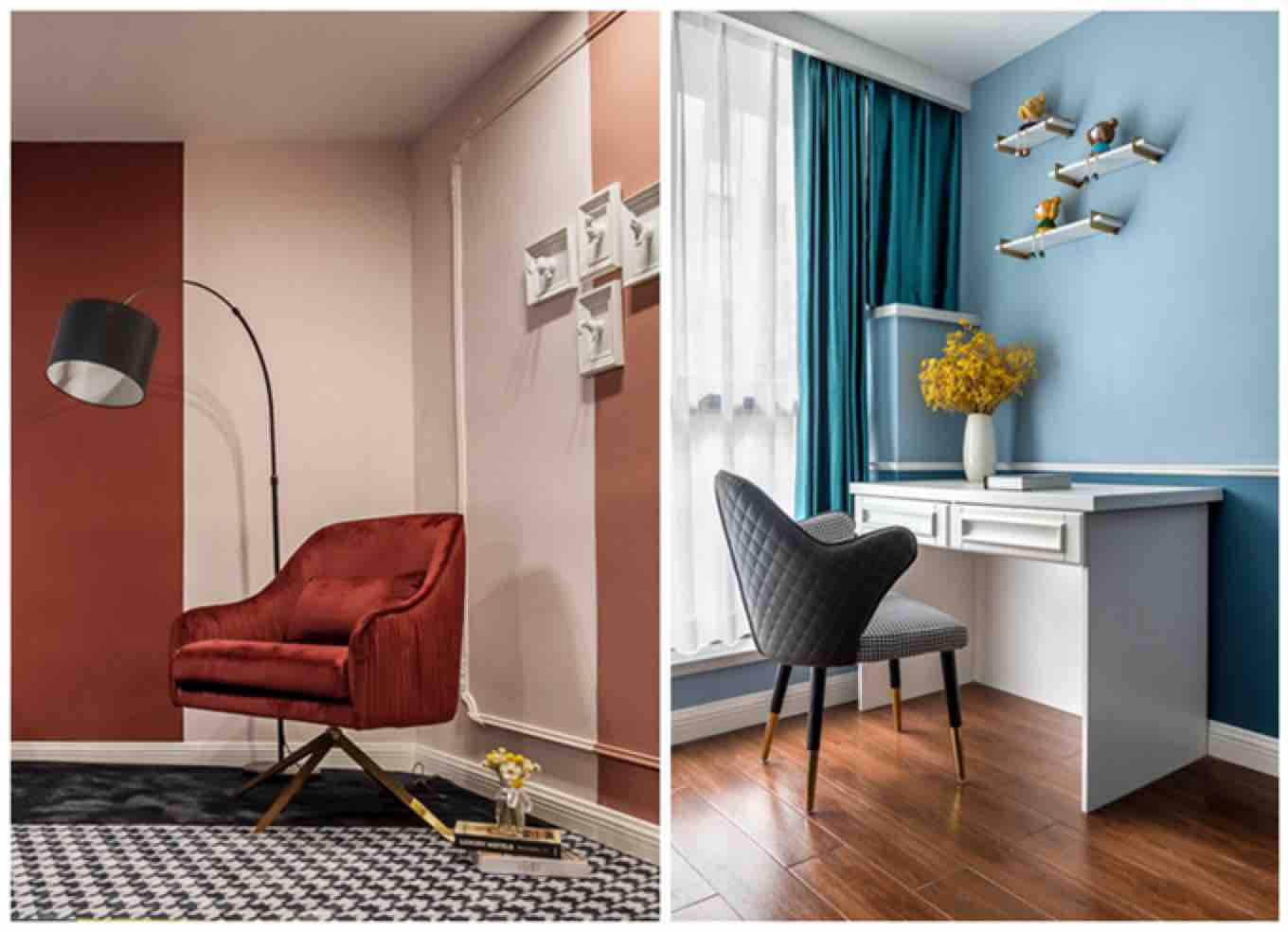 “半墙漆”使用不同颜色或不同材料的拼接可以构建出一种鲜明的对比差异,为空间注入了更多吸睛的元素,给予空间更多的灵动感和趣味性。