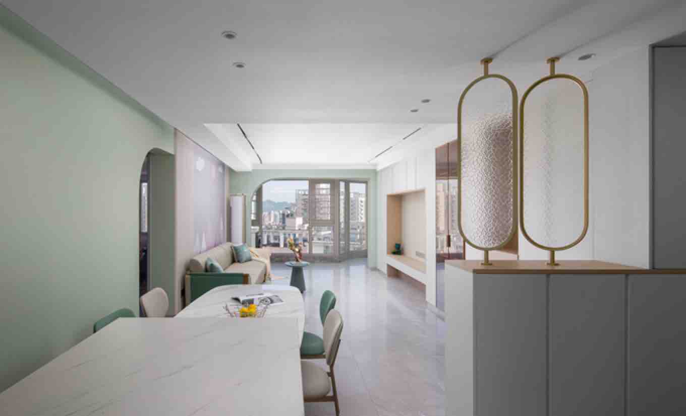 并且,色彩的范围也能表现出一种分区效果,可变性还更高,用于功能分区性美观又便宜,适用于餐厨一体、客餐厅一体等多种功能区在同一个空间内的情况。
