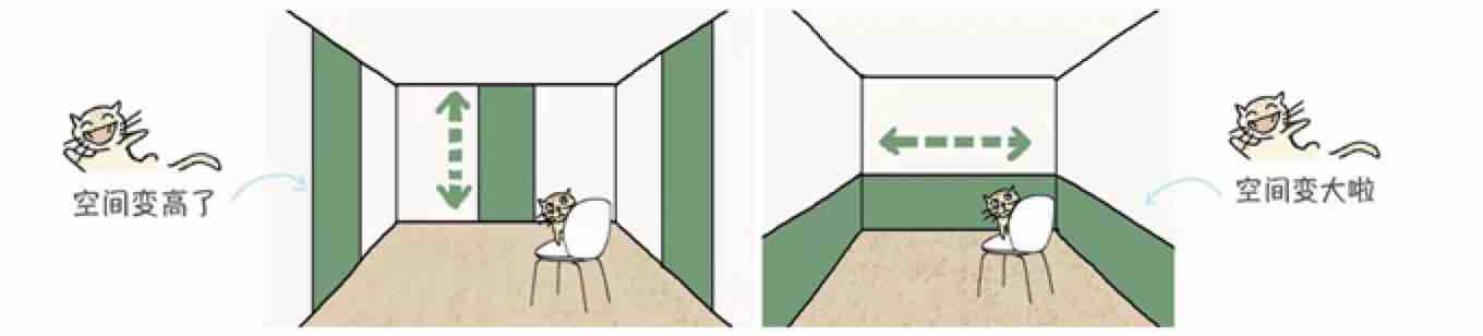 人的视觉会跟着线条走,横向或者竖向就可以表现出宽或高的视觉效果;而颜色的深浅也可以表现出空间的前后感。