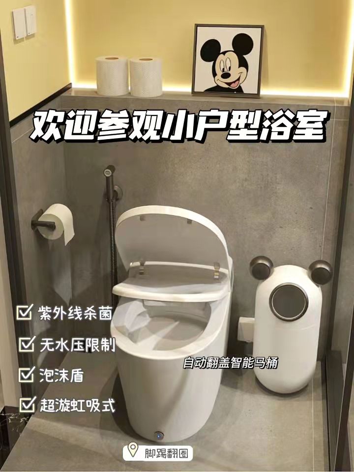 马桶区主要就是马桶,垃圾桶,卷纸,壁画这一些。重点说说这款智能马桶,真的颜值太高了!整个浴室都被带的高级起来了,而且尺寸也很适合小户型卫生间🚾,还带了很多暖心功能,不到4k 轻松拿下,感觉真的nice✨