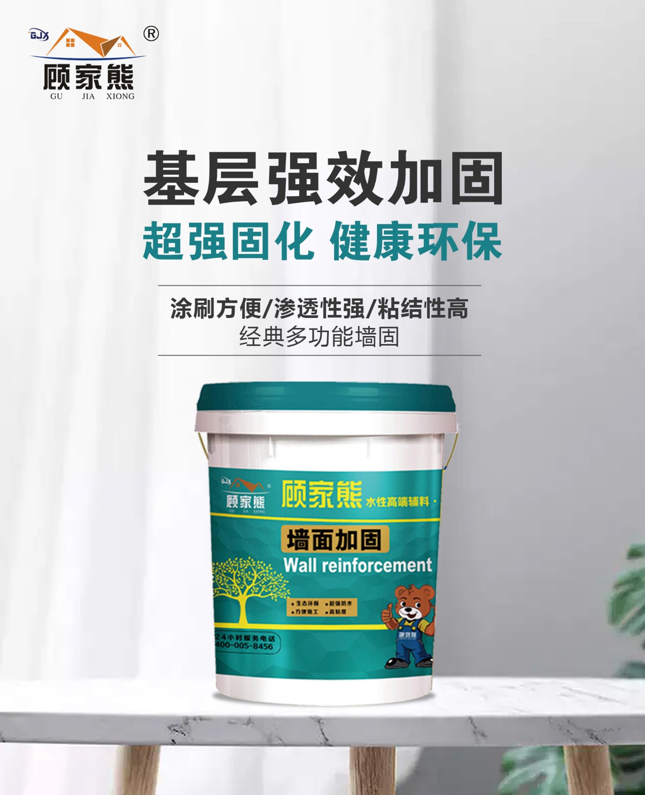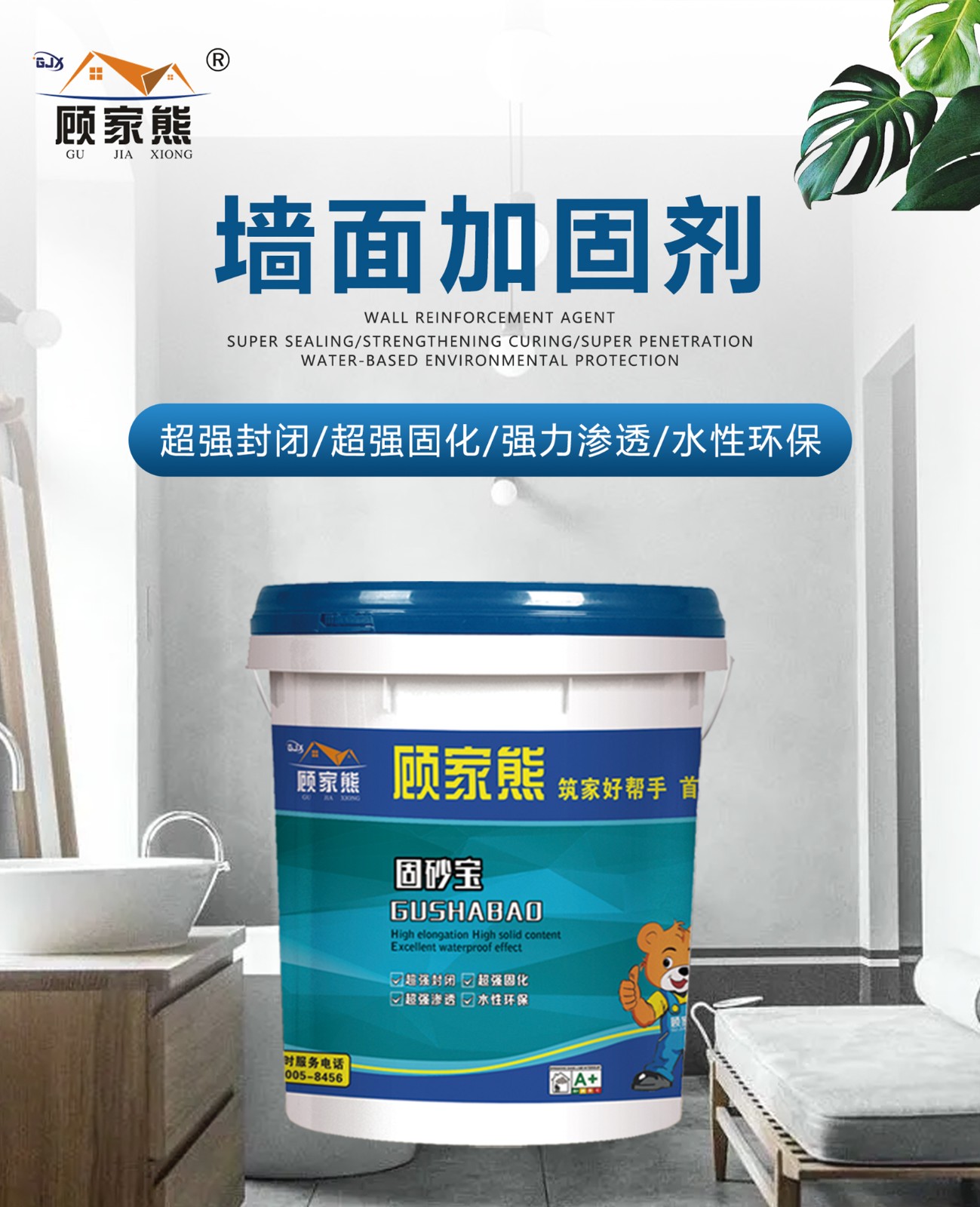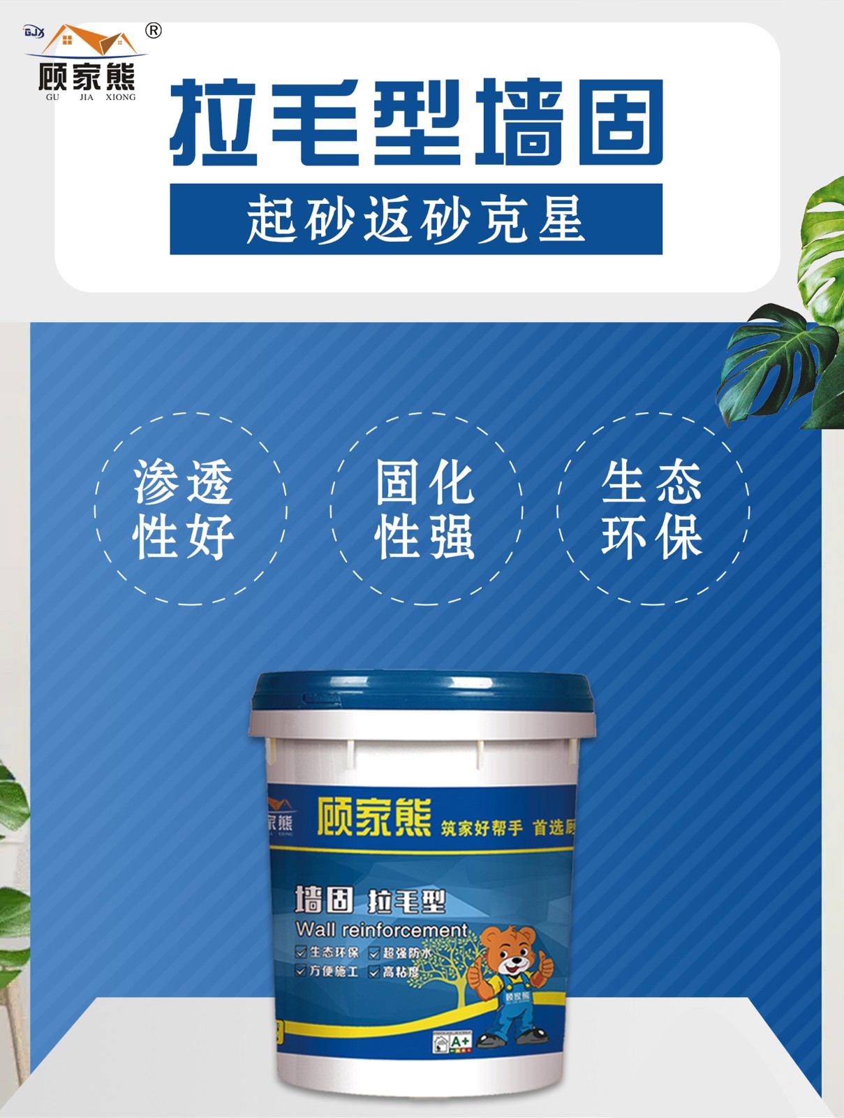 1. 什么是墙固墙固顾名思义墙面固化,具有优异的渗透性、耐磨性、遮盖力强的特点,所以在装修过程中,是很常用的一种建筑材料。2. 为什么要用墙固?好好的墙面为什么要刷墙固呢?我们要明白,平时我们看到的墙面,其实分了很多层,水泥砂浆墙面很有可能出现墙体表面疏松,砂粒粉化严重这样的情况,如果这时候直接刮腻子,腻子的附着力会比较低,最终会影响后续的装修,出现墙面开裂、空鼓、脱落等问题,所以就要用到墙固。3. 墙固越粘稠越好吗?墙固和胶水不一样。虽说都可以起到封闭基层、增加附着力的作用,但是墙固是一种环保产品,采用水溶性树脂、多功能助剂精制而成的水性界面处理剂,判定其质量好坏的依据不能单凭产品的稠度,而应该考量产品的固含量、渗透性优劣及粘结力。4. 墙固涂的越厚越好?墙固主要是起到了承上启下的作用,高渗透性,使光滑松散基层变得粗糙硬实,提高粘合度,所以只需在基层上细密涂刷一到两遍就可达到固化的效果。5. 产品推荐:顾家熊墙面加固剂顾家熊墙面加固是一种新型的水溶性高分子聚合物界面处理材料。本产品具有优异的渗透性和封固性,充分浸润基材表面,使基层密实,不起粉,防止跑沙、起灰,并能提高光滑界面的附着力,本产品无毒,淡味,是绿色环保产品。用于混凝土、灰砂砖及粉煤等界面处理。
