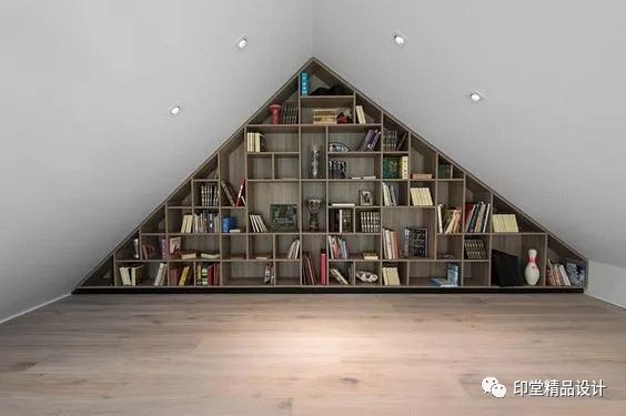 收纳区:因为受到层高和形状的限制,阁楼收纳一般都在墙上寻找切入点,其中以嵌入式设计最为常见。