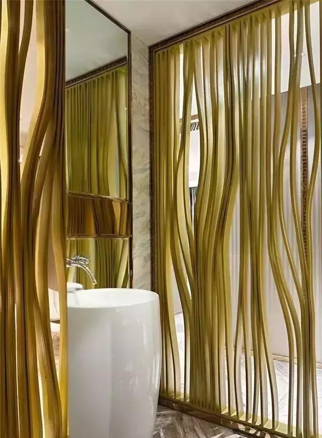 如果你家也在考虑卫生间干湿分区,那千万不要只是简单地做一个隔断,一个精美的雕花镂空隔断,或是设计感十足的个性隔断,都能为你家增色不少。镂空的设计既能起到隔断的作用,又不会显得太过呆板,加上满满的设计感,简直不能再美了!