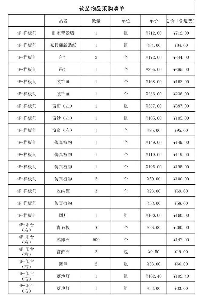 品相是啥?这个价格就是上面案例中所使用的软装的价格。一一对应的
