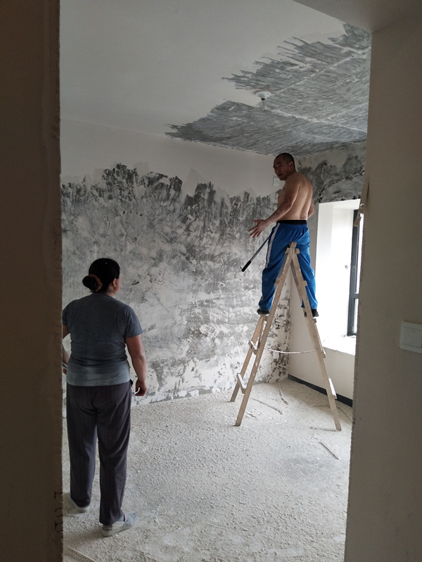 一切都按程序正常进行着,拆墙铲墙都是按照要求施工,在装修施工的同时。我和易经理商量合同的事,就是一份格式性的合同,也没有什么特别的事项,主要是工程和需要我们相互配合的事项。我问易经理:三个月能不能完成?我想在国庆节的时候搬新家。易经理说:我计划的是两个月内完工,房间通风透气一个月,国庆节就能入住了。合同里签订只交1000元的定金,我感觉很意外,其他项目都是先施工,验收合格以后再付款。施工中照片: