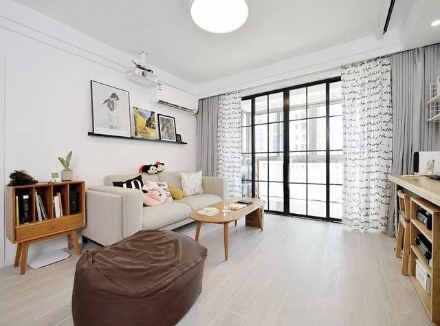 客厅与阳台一起介绍,多数情况下都是两者相结合,客厅的移门较大,多数为四扇,功能便是用来与阳台区分,有些网友会说没必要将阳台隔开,这个要根据阳台的实际功能情况来分,如果阳台需要置放洗衣机,做拖把池,以及晾晒衣服,做为功能性区域,建议是要区分。就如下图的北欧客厅,如果没有区分,会大大降低家居美观。▼