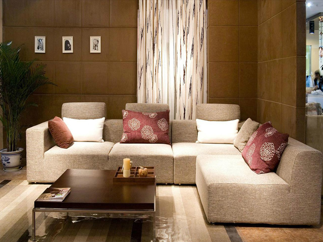暖色系沙发使空间看起来很拥挤在家居装饰的时候,颜色的搭配要适度,黑色、白色、灰色搭配效果往往出奇的好,这也是近年来很流行的颜色搭配,既不会给人强烈的视觉刺激又不会让人觉得没有品位,给人一种稳重的感觉,但是最好添加木色等自然元素来软化一下这种过于冷酷的颜色,强烈的红色等暖色也能减缓这种僵硬的感觉。