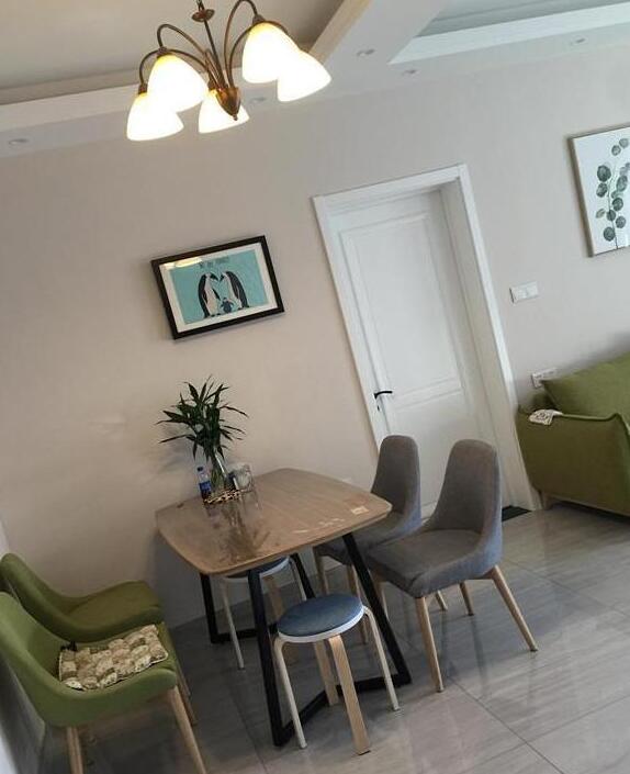 首先来看看客厅,一组简约款的抹茶布艺沙发搭配白色的小茶桌,简约清新。同时给人眼前一亮的感觉,因为真的很少看到家里的沙发是抹茶色的,一般都是灰色或者米白为主。