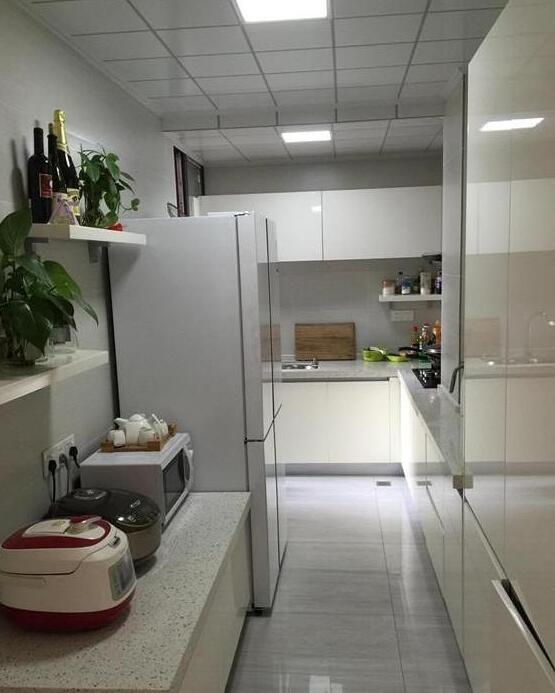 厨房的面积算是比较到的,但是却是一个长条形的!另外还带着一个生活阳台哦。