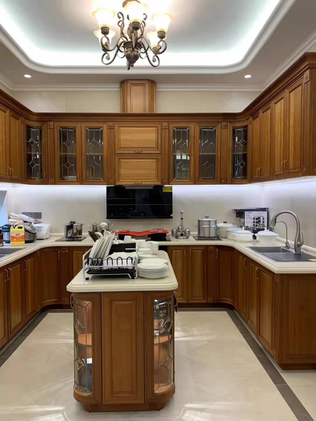 1、U字形U字形的橱柜,天然就把使用区域分为三个,我们可以根据自身使用习惯,从左到右或从右到左排序,分别划分为洗涤区、切菜器、烹饪区。U型布局特别适合空间较大的厨房,可以容纳多人参与烹饪。不过,转角部分也会有两个使用盲区,因此要结合厨房户型做专门的定制。