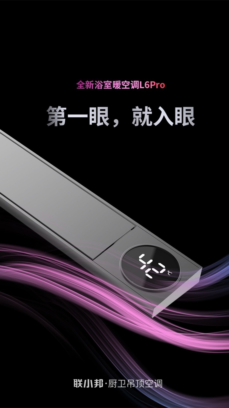 此次联小邦一口气将推出的3款线性浴霸全面覆盖了当前线性浴霸的几种形态。有主打极窄贯穿式设计的增压风幕暖空调L9,有非贯穿式安装开孔版的线性暖空调L6Pro和卡龙骨安装版线性暖空调L8。