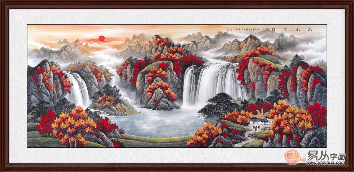 流水生财福泽长刘燕姣最新聚宝盆山水画作品《流水生财》作品来源:易从网刘燕姣聚宝盆题材作品《流水生财》用渲染手法,突出祥云环绕,满山红遍的宏大景象,远处山峰层层叠叠,枫林披覆,一片火红,脚下江水悠悠,碧绿清澈,大地理风水格局讲究的是左青龙、右白虎、前朱雀、后玄武,画面构图远虚近实,近景突兀、远景清雅、墨气明润,浓淡虚实相生。画卷生机勃勃,流溢着生命的**,跳动着生命的神韵,对自然精神的观照。此作品适合在会议室、办公室悬挂,既是一幅好风水画,也是一幅好的山水作品。会议室当需一幅好的山水画作品,无论是为了装饰,还是给公司带去好的风水寓意。