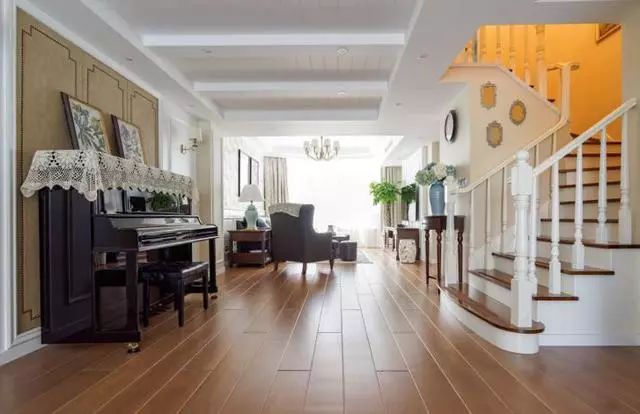 中厅里面摆放着一部钢琴,我很久没去弹了。楼梯是在右边