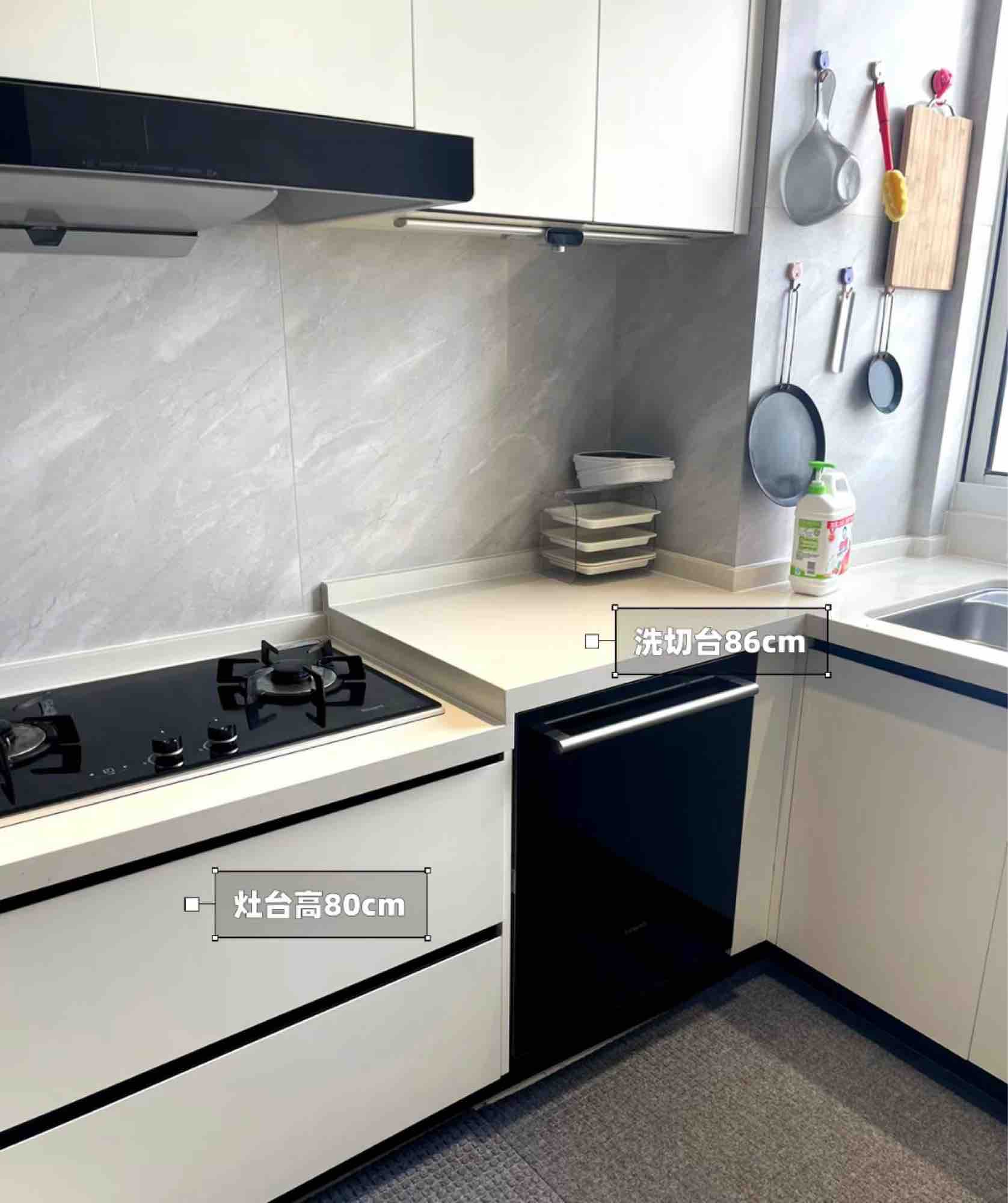 二、高低台面做高低台面设计以切菜去做标准,水槽做高6厘米,灶台做低6厘米,这样洗菜不用弯腰,炒菜不用抬胳膊,更省力气。