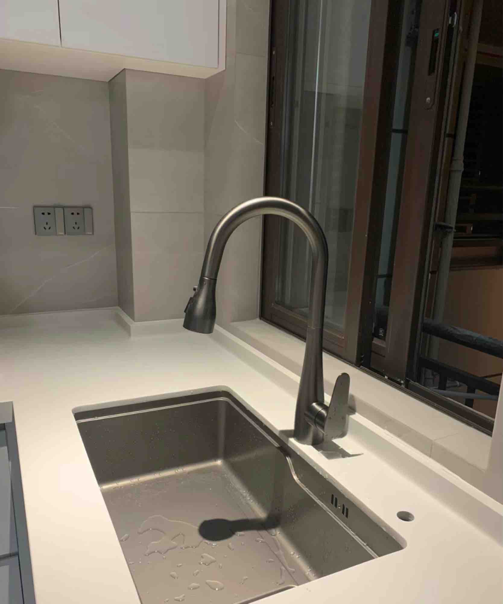 七、台下盆厨房水槽一定要做台下盆,台面的水一扫就能全部浸盆。常方便打理,水槽要用大单槽盆,600毫米的就能满足所有生活需求,双槽盆占空间,还不能洗大碗大锅,非常鸡肋。