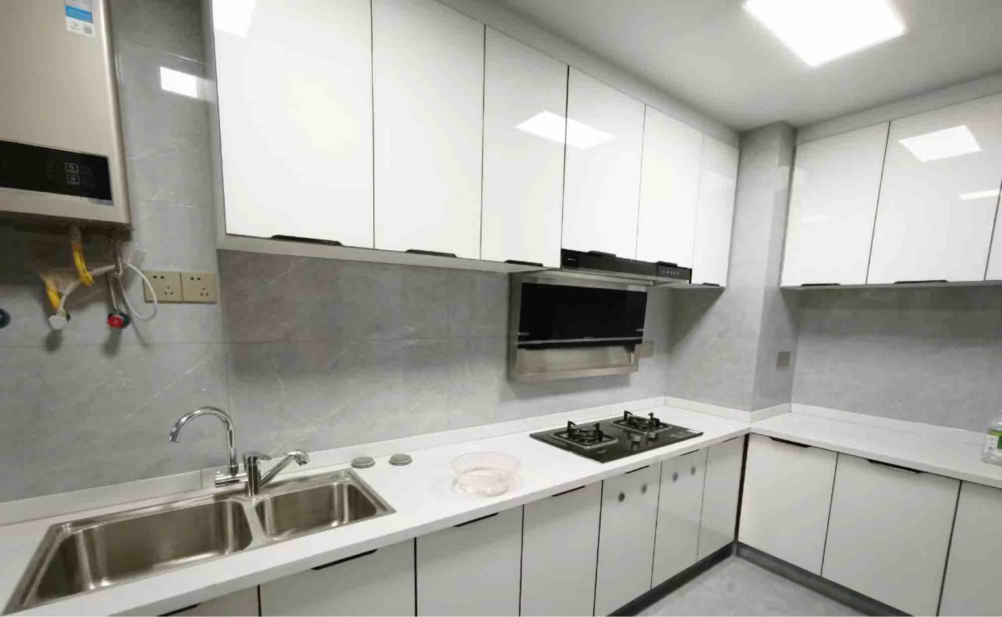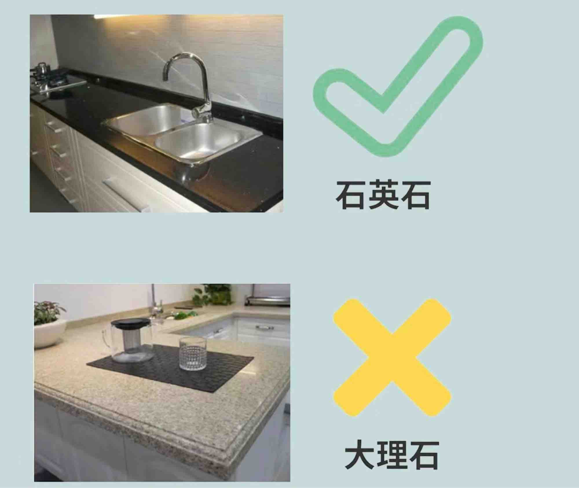 五、台面材质橱柜台面选石英石就可以了,坚硬耐磨耐高温,是目前最结实耐用的台面材质。木头不耐热,天然大理石容易裂,不锈钢容易有刮痕。