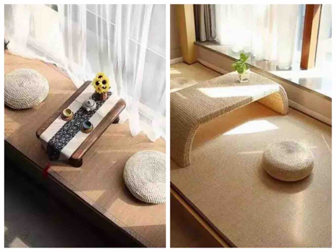 方便移动的小桌子,便于清洁与打扫。日式榻榻米的特点在于舒适轻松。泡上一壶煎茶,摆上和果子和抹茶芝士小甜点,便可以和友人盘腿而坐谈天说地。