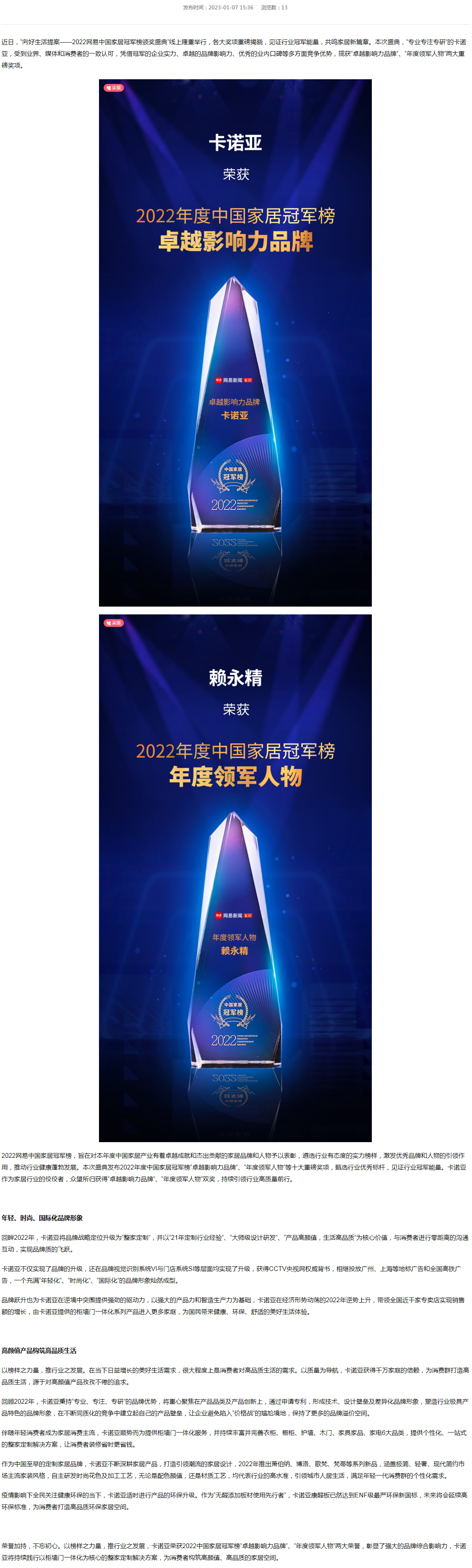 齐家网> 齐家装修论坛> 匠屋> 致敬卓越|卡诺亚荣膺2022中国家居冠军榜卓越影响力品牌大奖