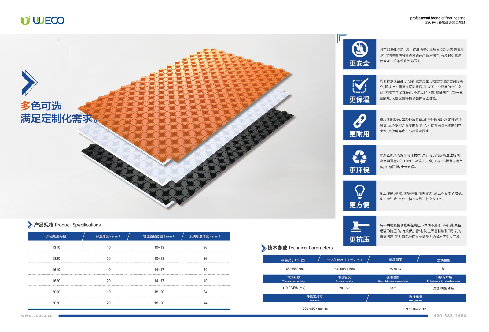 许多家庭在装修房屋的同时也在计划房屋的采暖问题。地暖是目前最主流的采暖方式之一,越来越多的家庭开始安装地暖。如今市面上地暖模块品牌众多,鱼龙混杂,湿式的,干式的,令人眼花缭乱。每当供暖旺季,经销商都不知道该如何选择。要选择地暖模块正规的厂家人们对冬季采暖要求在日益提高,简单的保暖舒适已不在能满足人们的需求,地暖模块的节能、环保性越来越备受关注,成为消费者衡量地暖产品重要标准之一。环保是第一要素,在进入市场开始,优友就将产品交由国家建材检测中心检测,经过鉴定,优友地暖模块甲醛释放量结果为“未检测出”即甲醛零排放,成为获得国家检测报告的环保品牌之一。优友地暖模块严格执行辐射供暖供冷技术规程(JGJ 142-2012)标准制造,每一平方米都采用纯料(与达标餐盒材质相同)生产,无毒无味,环保安全,质量远远超过一些所谓的“德国品牌”,可与建筑同寿命使用,不发生沉降、空鼓现象。优友研发的覆合分体式地暖模块除具备环保节能外,它独特的倒扣设计对地暖管材还会起到固定和保护的作用,且优友作为标准化地暖施工工艺的倡导者,它施工快捷、方便而受到施工人员和消费者的青睐,优友地暖模块将会是精装房和家装地暖市场的强力推动者和引领者。