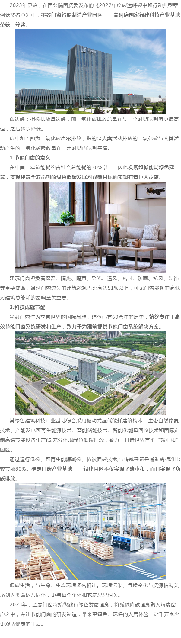 扬帆启新程!墨瑟门窗获“2022年度碳达峰碳中和行动典型案例