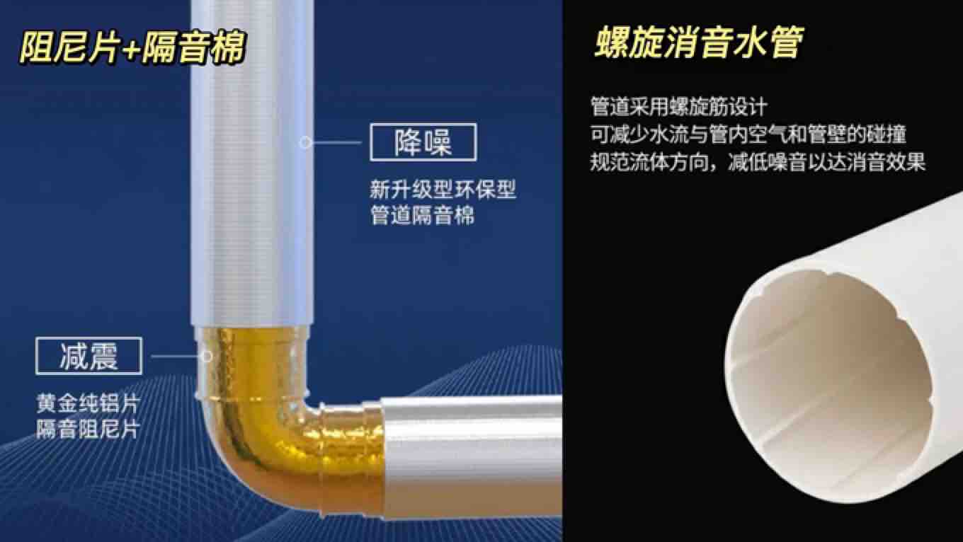 卫生间里的噪音主要来源于下水管,而整栋楼的排水管道都是公用的,所以邻居家排污水的噪音很容易传递到自己家里。下水管产生的噪音都是水流冲击管壁引发的低频震动。降低这个噪音可以选择在管道上包裹阻尼片和隔音棉,经济实惠;如果预算充足可以直接把普通水管换成螺旋消音水管,效果更好,甚至是两者叠加使用。