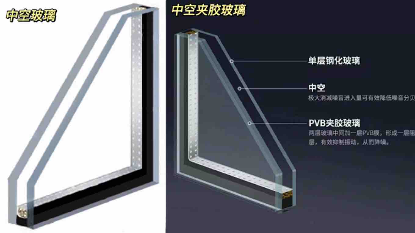 如果家里会被窗外交通的低频类噪音影响,可以选择断桥铝+中空夹胶玻璃。它内部的胶片相当于阻尼层,能有效抑止玻璃的振动,降低低频噪音。
