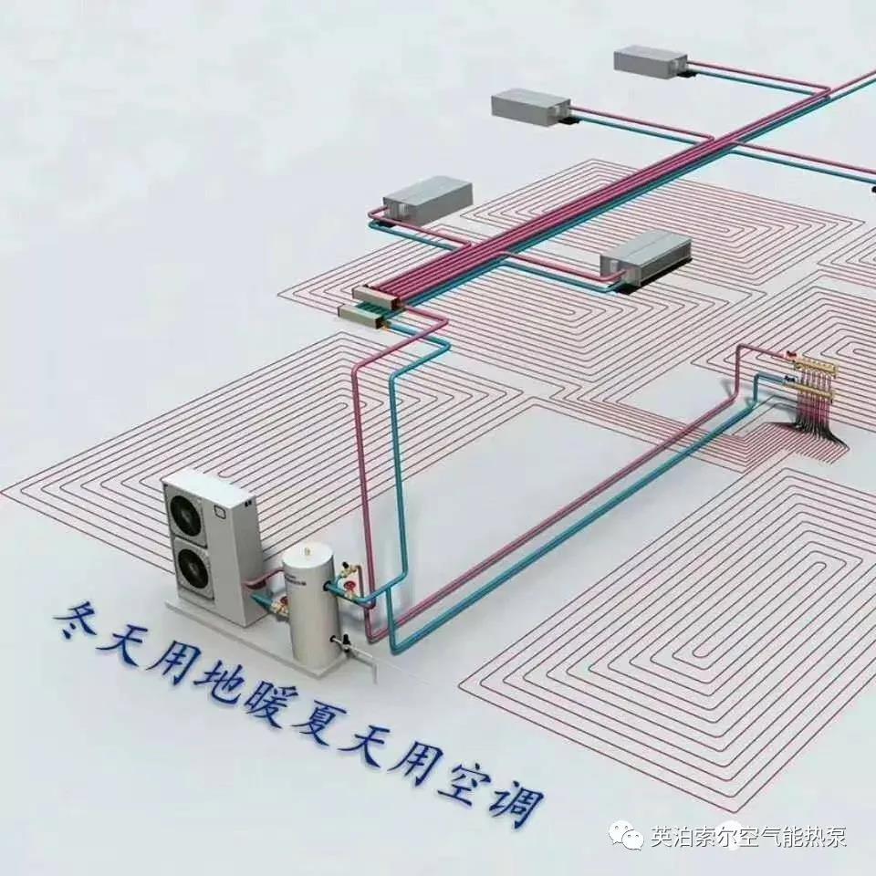 什么是空气源水系统中央空调?空气源水系统中央空调也叫空气源热泵冷暖两联供。一台空气源主机,夏天制冷,冬天取暖,冷暖两用。机组在夏天的时候,通过少量电驱动,利用空气中能量,产出冷冻水,冷冻水经过循环系统在风机盘管中进行热交换,将冷气吹出;同理,在冬天的时候产生热水,热水通过地暖管加热地面装饰层,通过地面辐射将温度传入室内。