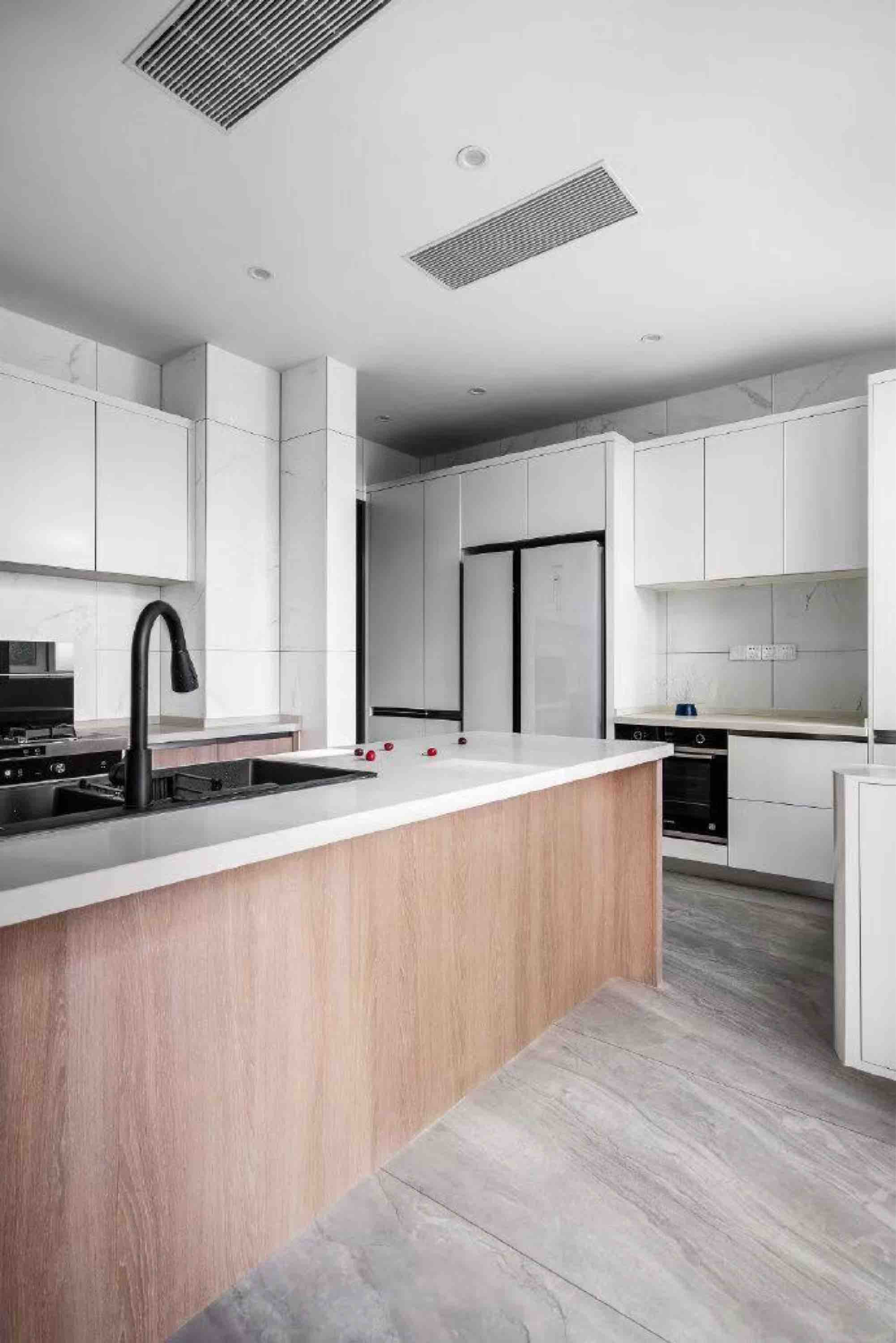 厨房面积充足不妨在厨房内部打造岛台式布局,岛台的增加可以扩大使用台面,更有利于厨房使用功能的完善。
