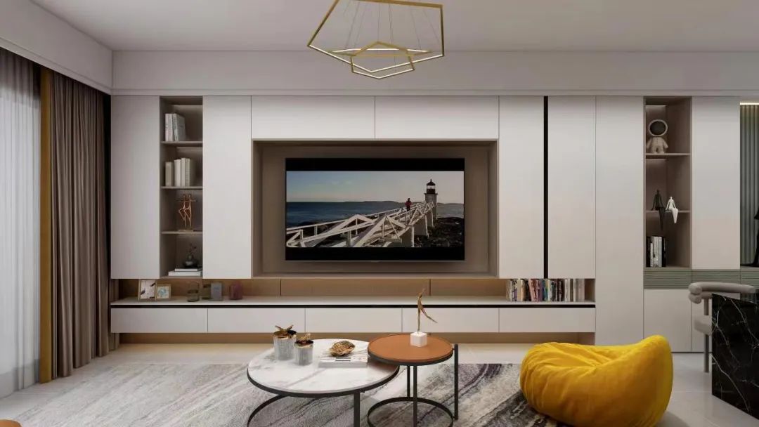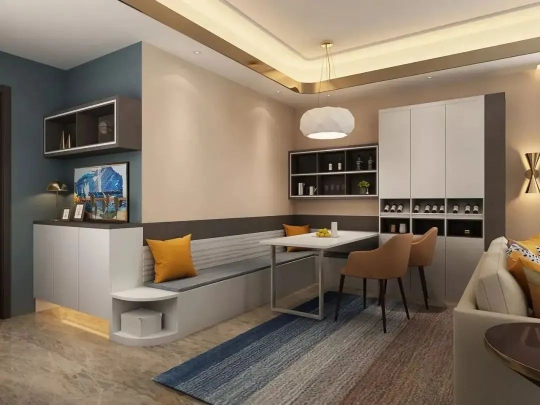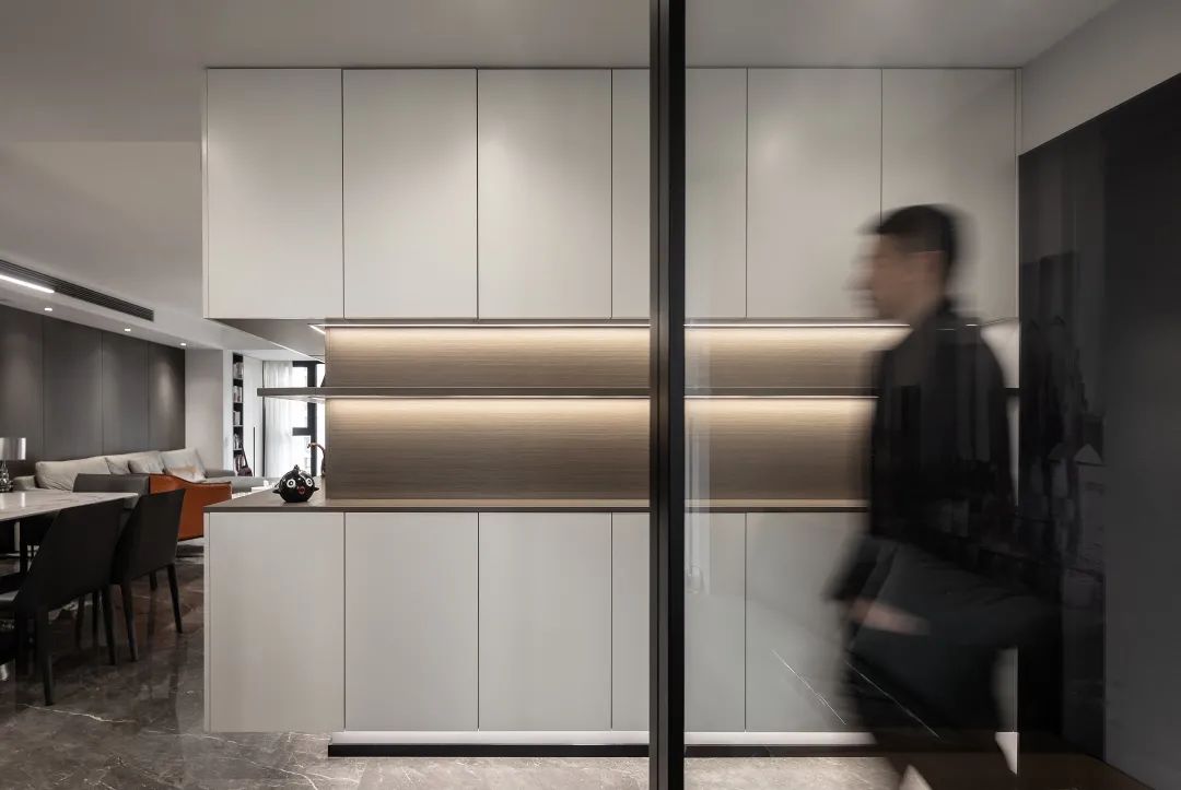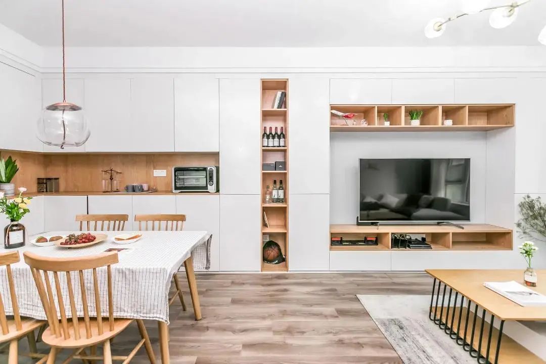 电视柜餐边柜电视柜餐边柜整墙定制,这种设计适用于一体式的客餐厅,不仅能提升客餐厅的储物能力,还能拉长客厅视觉,让小空间更显大。