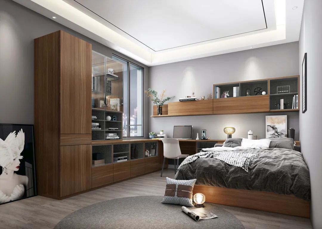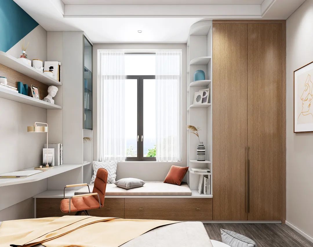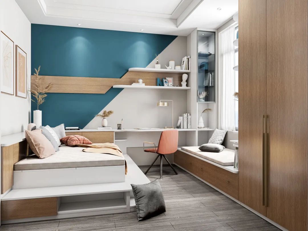 衣柜书桌榻榻米这种“功能三合一”的设计被广泛运用在儿童房或多功能房,它可以同时满足休息、学习和收纳需求,实用且美观。这种“柜桌床”的设计,不仅有舒适的工作区,储物收纳休闲会客临时客卧,一次满足四大需求。