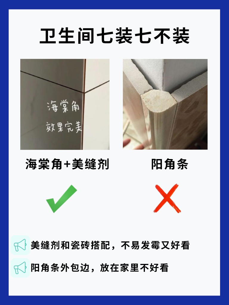 5⃣做海棠角+美缝剂,不做阳角条