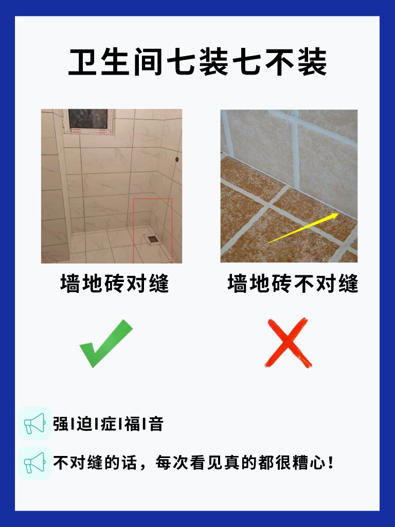 2⃣墙砖 地砖对缝铺贴