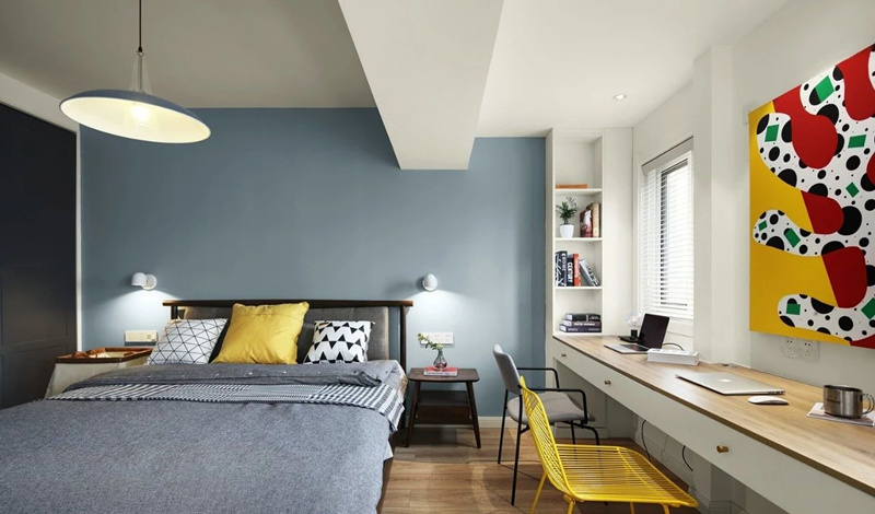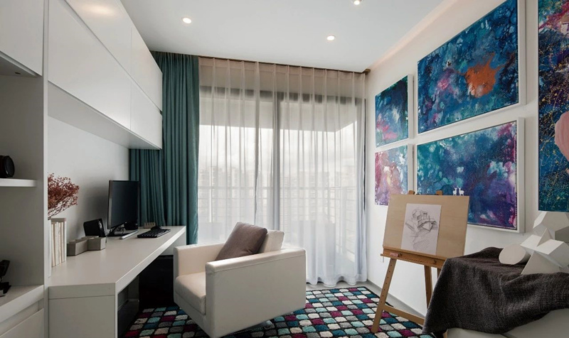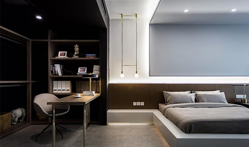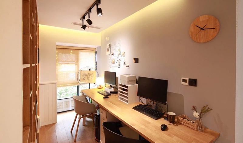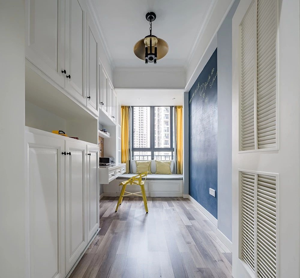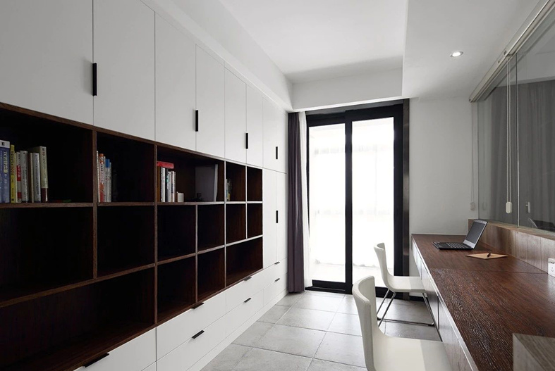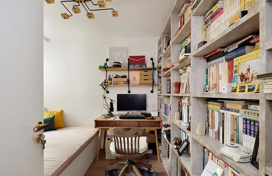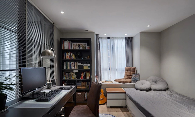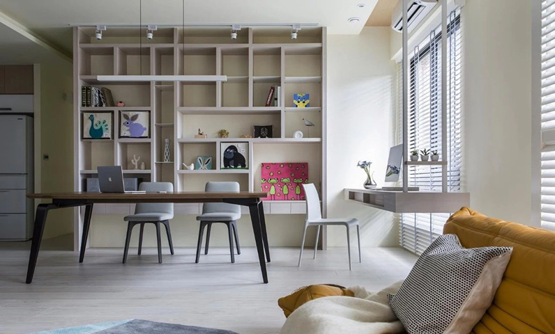 然而独立的书房不是想有就有的,对于小户型来说,可能还比较奢侈。对于有些家庭情况可能不得不放弃独立书房来满足其他功能。其实也不一定非要独立书房,除非真的是需要有一个空间安静的工作或学习。我自己新房子130平准备做两房,一个主卧一个儿童房另外一个空间做衣帽间了,虽然我在家工作时间挺长,不过我不容易分心,给我一个位置就行,餐桌、儿童房甚至衣帽间都能写,这么多年已经练就了自动屏蔽周围环境的功能。没有条件独立书房的话,其实可以把自己想要的功能提炼出来融入到其他空间中去,比如书柜、书桌可以加入到其他空间当中。9 、比如刚才提到的可以和次卧结合