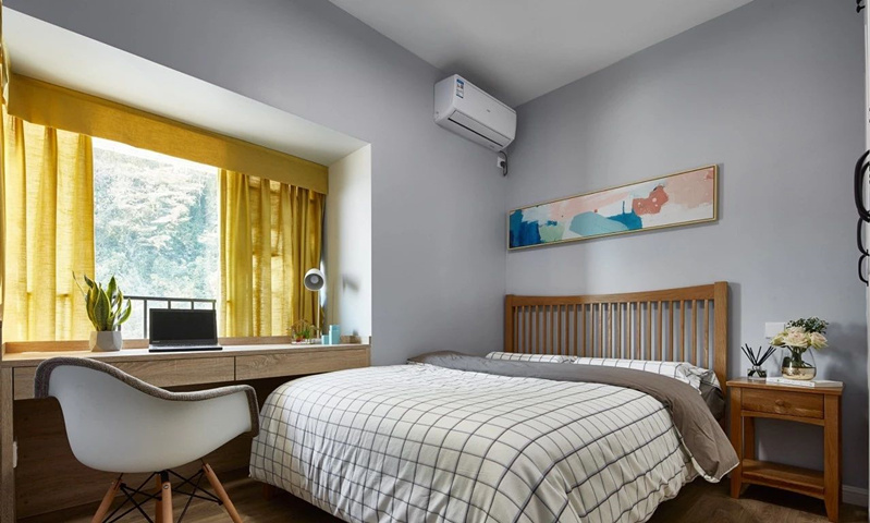 12 、卧室足够大的话,单独开辟一块书房区域也没问题