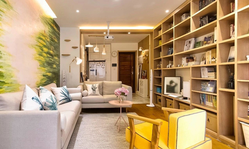 13 、还有人直接把客厅一个立面做成超大型的书柜,把整个客厅当书房用的