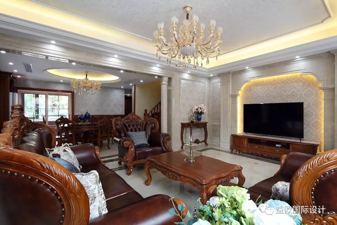 经典的吊顶、壁炉、大理石拼花已然奠定了奢华高贵的情感格调,柔和的空间气质,具象艺术品位。
