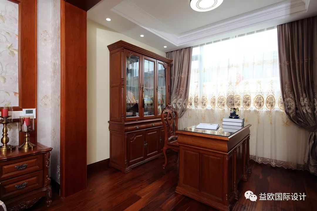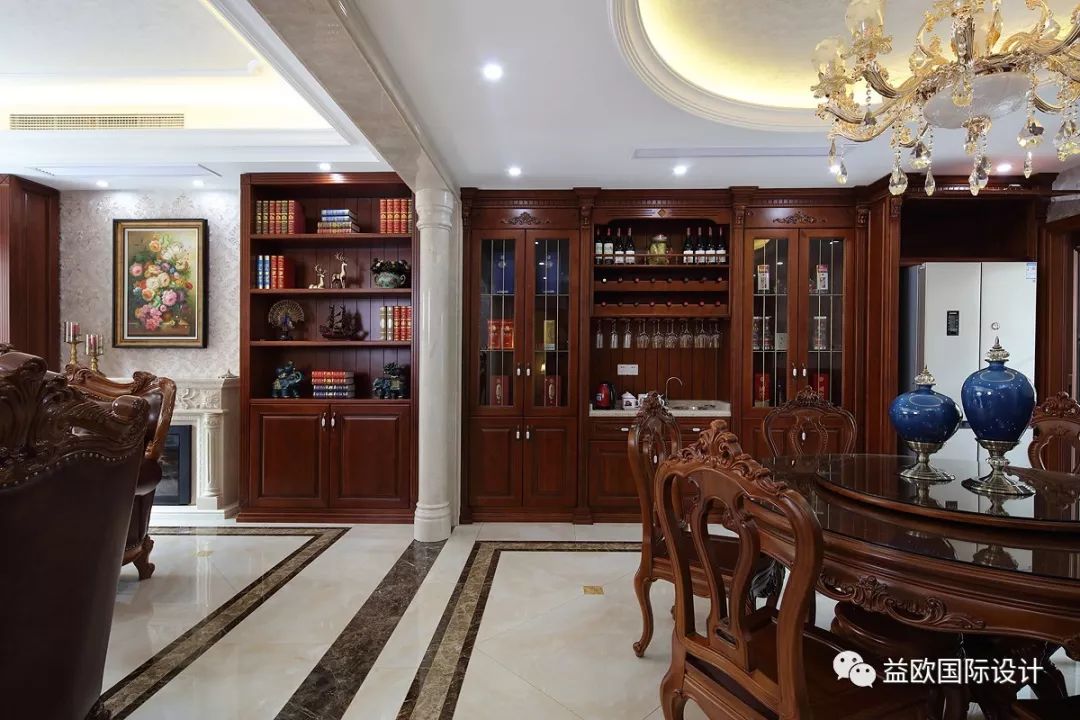 颇爱中式字画的业主,将中式情怀寄予欧式浓厚的文化底蕴,期许着华贵祥和美的家,为此几柜的欧式基调不期邂逅东方魅影。