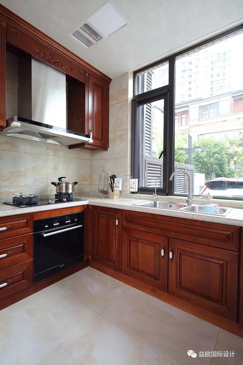 紧邻客厅的是餐厅,大理石拼花地面与高贵的实木餐椅完美搭配,而中西厨也成为了一大亮点。欧式古典的线条及色彩鲜明的木饰面让你爱上生活,从每一个清晨,每一份早餐开始。