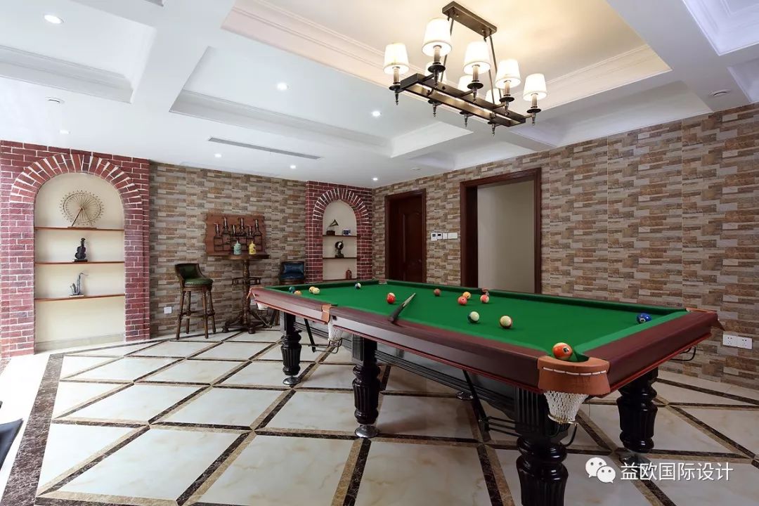 为诠释别样生活方式,满足现代人的生活需求,设计师在这栋私人府邸开设了相应的休闲娱乐区域,利用地下空间,魏主任打造台球厅。
