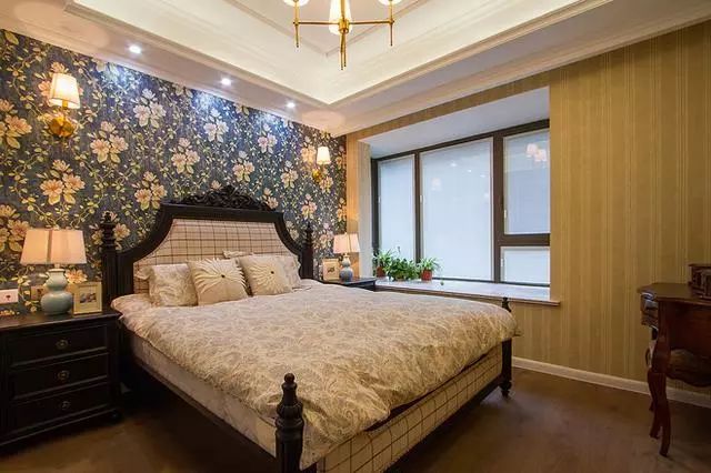 卧室的背景墙深得我的喜爱,碎花很有少女心的感觉。