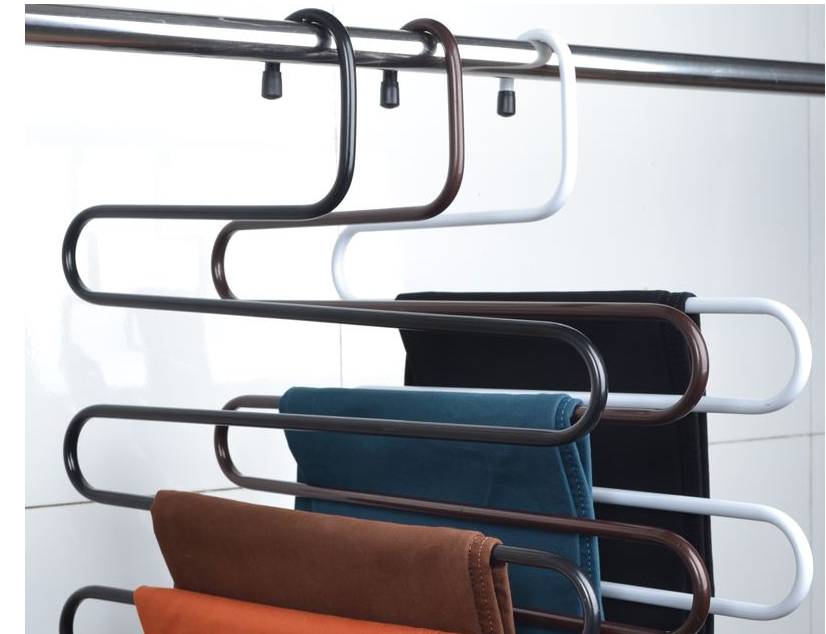 如果没有专门的裤架区,那么S型裤架就是一个神器,同样的悬挂位置可以从1条裤子变成4条!