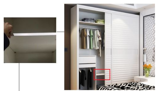 尺寸统一,在挑选收纳抽屉的时候记住,要根据衣柜内部可利用尺寸来选择,推拉门的柜体以搁板的进深为