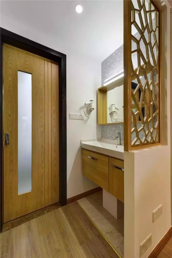 电视墙没有做任何造型,利用木色的的整体大框和黑色的门框,让整个空间显得不单调又不花哨!视觉上感觉空间延伸了很多!