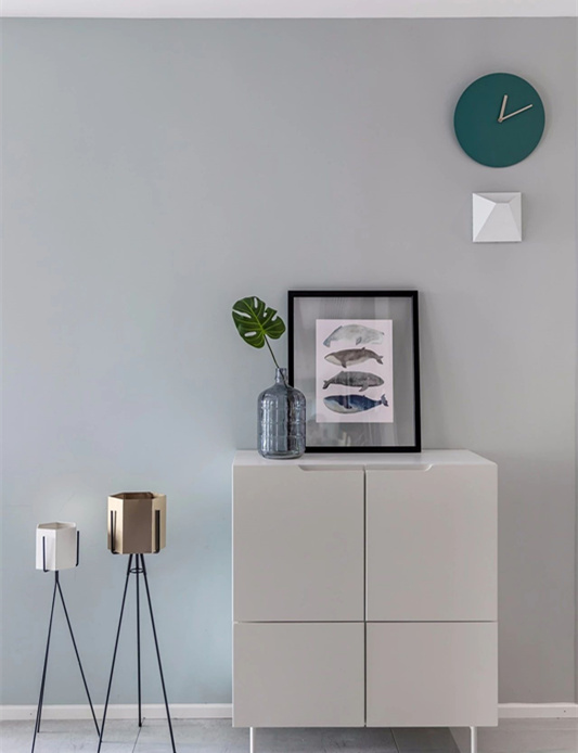 4 、 靠墙木作两组竖柜作背景,兼具储物机能